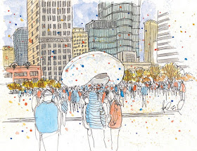 Gray was the color to start the day but it seemed with every smiling face that joined us the sky got a little brighter. Our Tri-State Sketchcrawl turned out to be a Quad-State Sketchcrawl! Illinois, Wisconsin, Indiana, and Michigan sketchers began meeting at 10:00 A.M at the Bean!